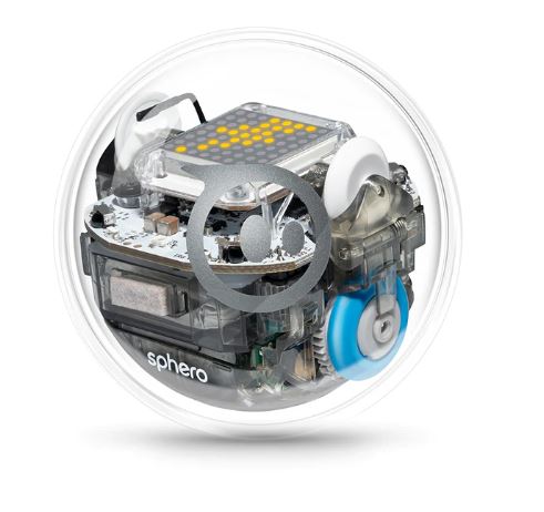Sphero Bolt is a programmable gyroscopic robot that you can drive and code with an app. They are simple enough for younger grades yet have capabilities advanced enough to be used in High School. They are very versatile with led lights and sensors. Further, the shell is practically indestructible and waterproof.